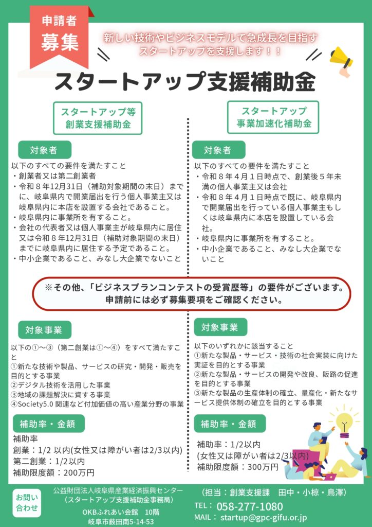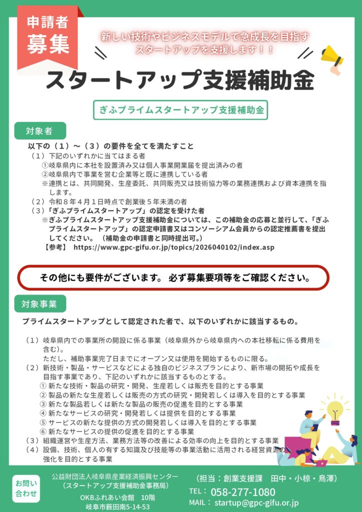 ・ぎふプライムスタートアップ支援補助金